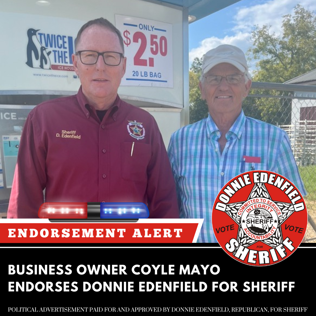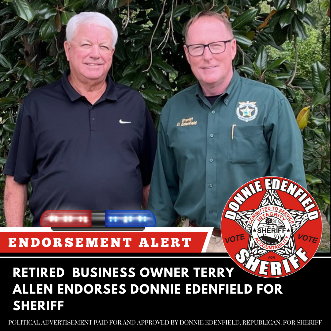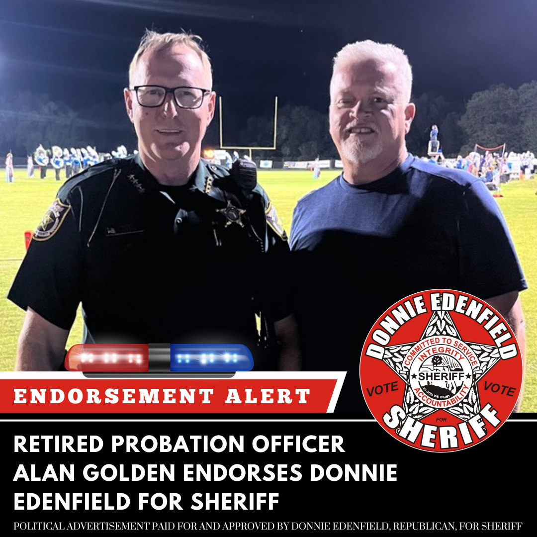 Please join me in supporting Sheriff Donnie Edenfield for re-election in the upcoming General Election."