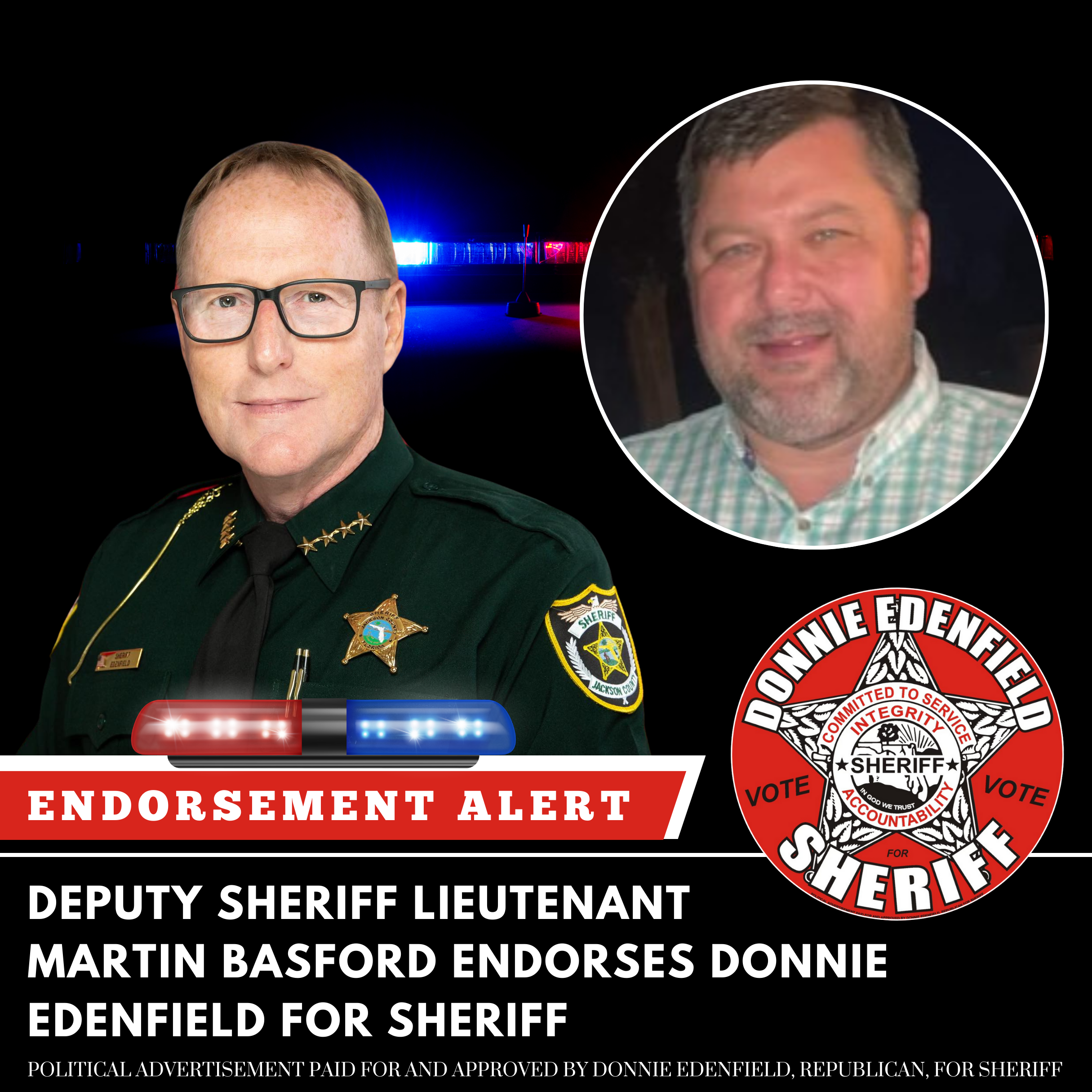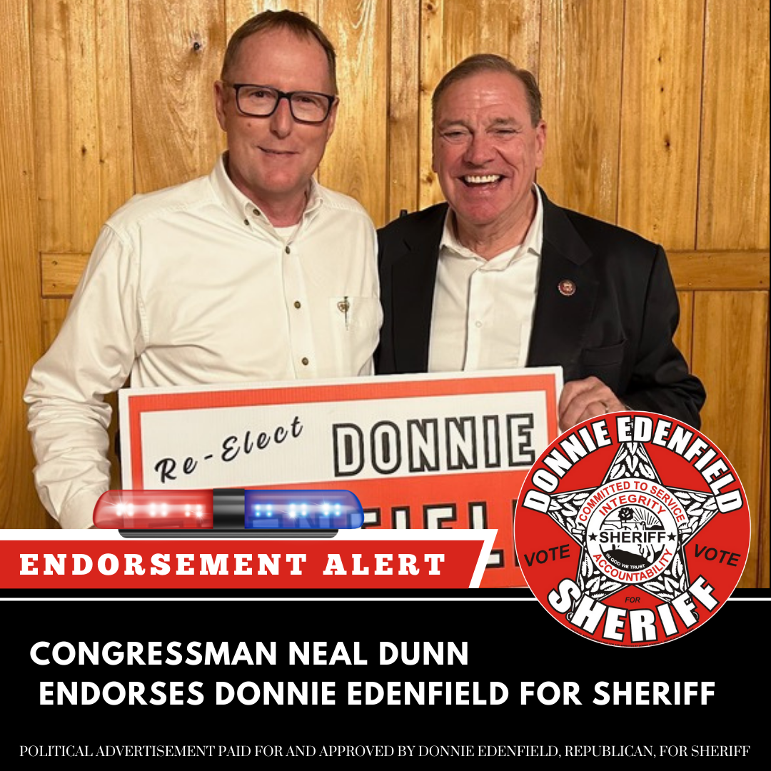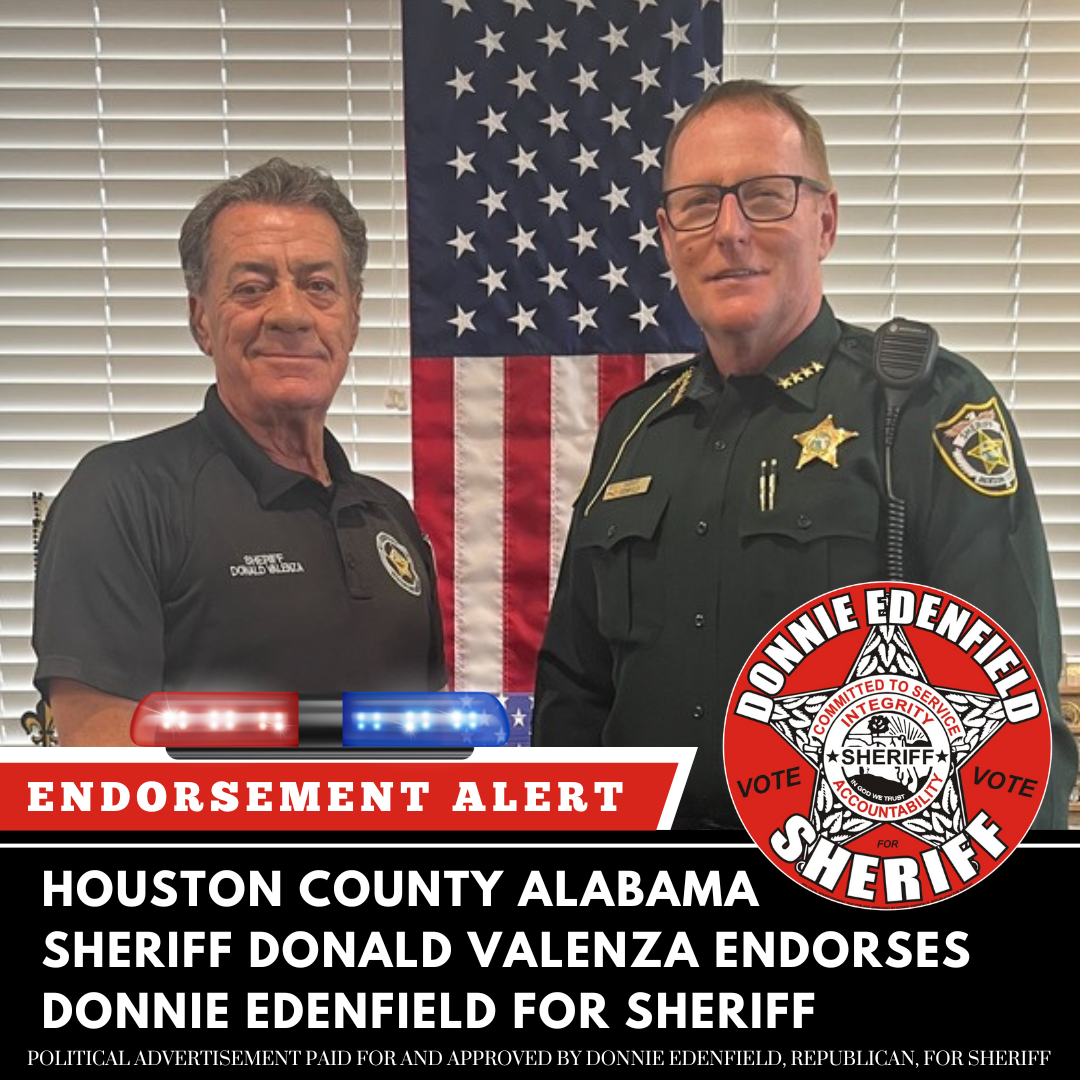 “As a proud Veteran who has served this country, I understand the importance of strong, principled leadership. That's why I'm endorsing Sheriff Donnie Edenfield for another term. Sheriff Edenfield has consistently demonstrated a commitment to upholding the law, ensuring the safety of our community, and treating law abiding citizens with the respect they deserve. Under Sheriff Edenfield's leadership, we've seen a reduction in crime, increased community engagement, and a renewed focus on safety. I trust Sheriff Edenfield to continue serving with honor and dedication, just as I did in my time in the military. I encourage you to join me in supporting him in the upcoming election."