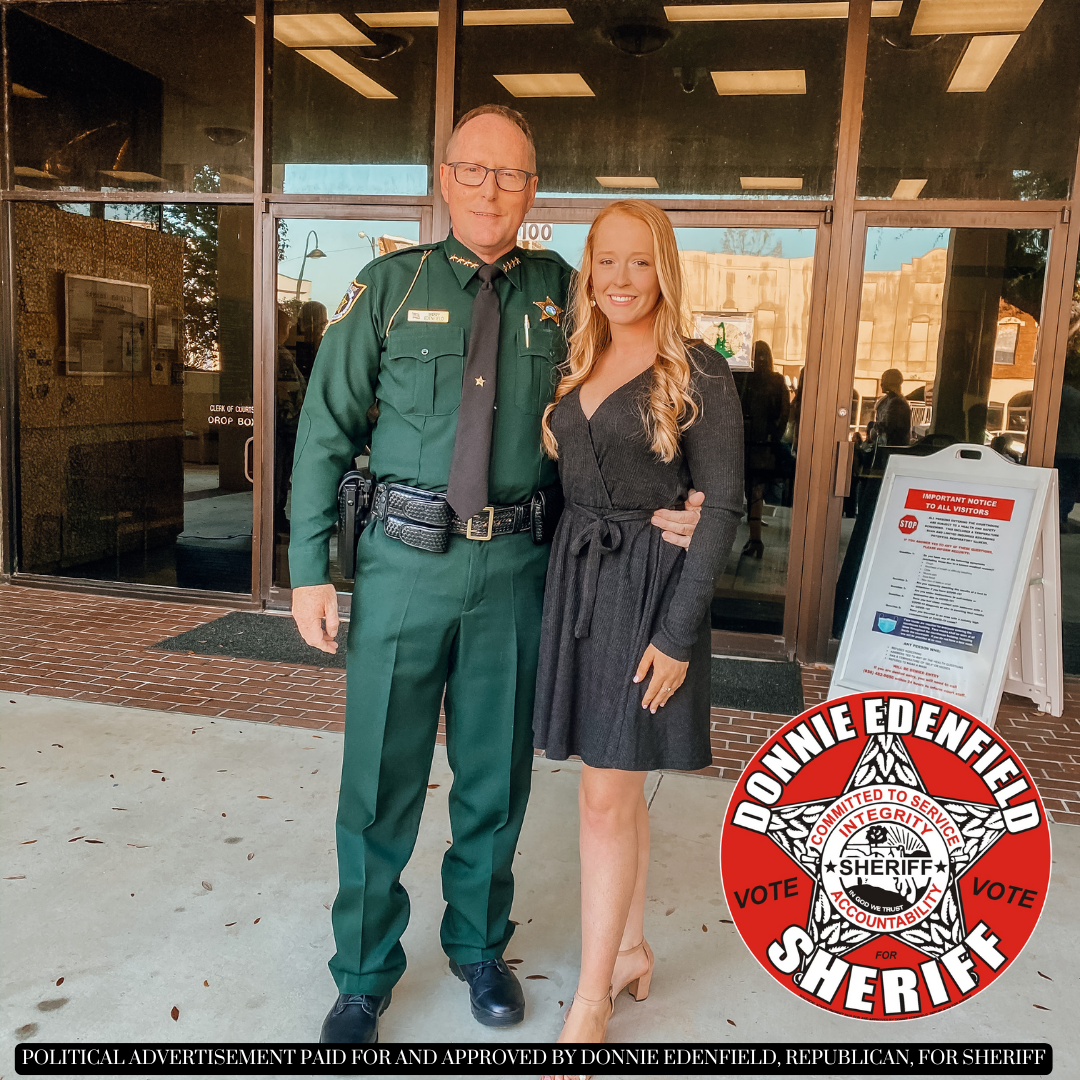 “My family and I will proudly be voting to keep Donnie Edenfield Sheriff of our great county. He is honest, fair and dedicated. These are all characteristics instilled in him by his parents. I watched it through the years as his family and our family spent so much time together. I’ve seen the hard work and integrity in action in his life. He is always going to give his best, go beyond the call of duty, and stay the course until the job is done. Not only does he take his job seriously but we see him here in Grand Ridge at our community events helping any way he can. He is the real deal. Vote Donnie Edenfield for Sheriff."