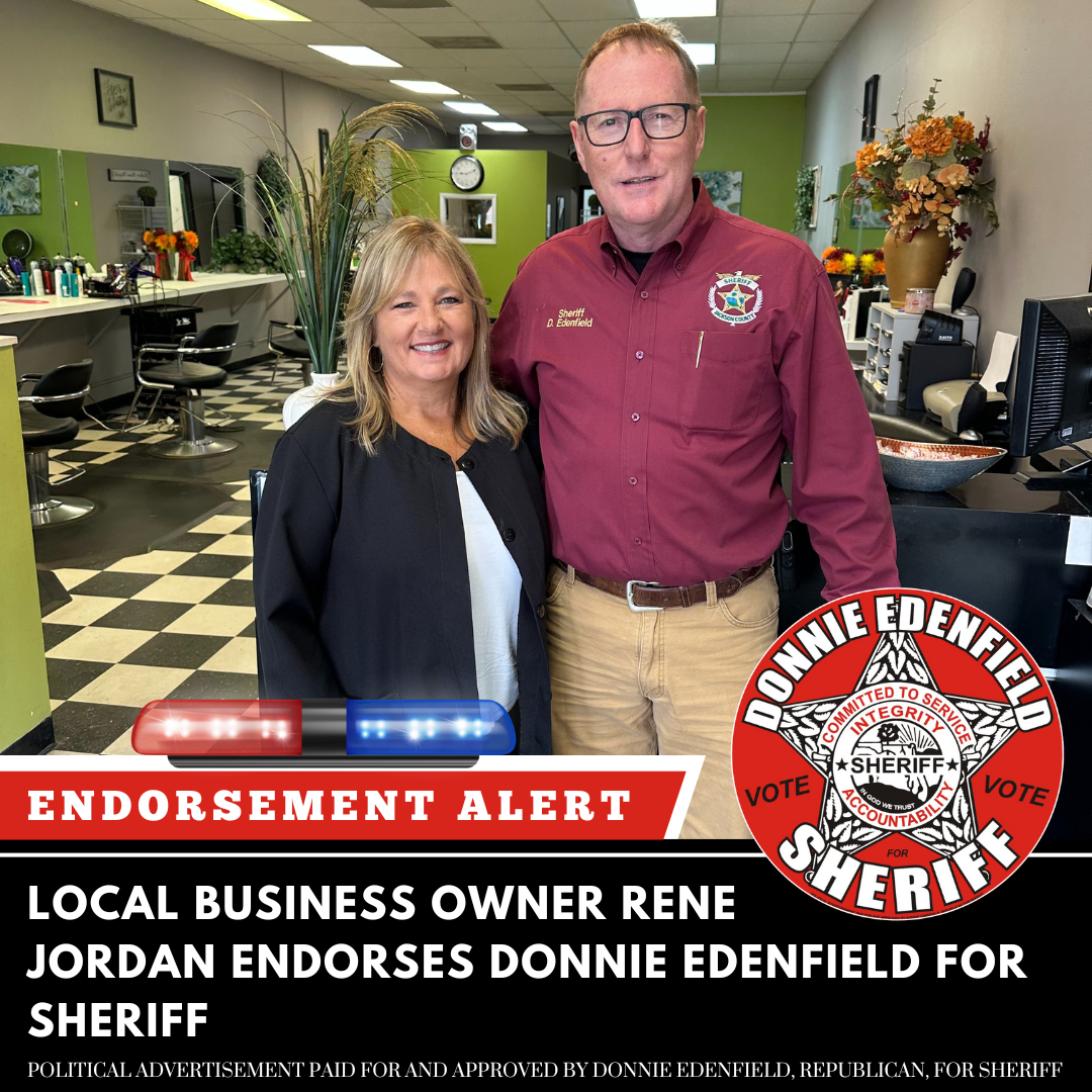 "For many years, Sheriff Donnie Edenfield has been both a loyal customer and a friend. Sheriff Edenfield is a person you can always count on and someone who always chooses to do the right thing. He is focused on bettering all of the communities in Jackson County and I am confident he will continue to do so over the next four years. Join me in re-electing Donnie Edenfield as Sheriff of Jackson County."